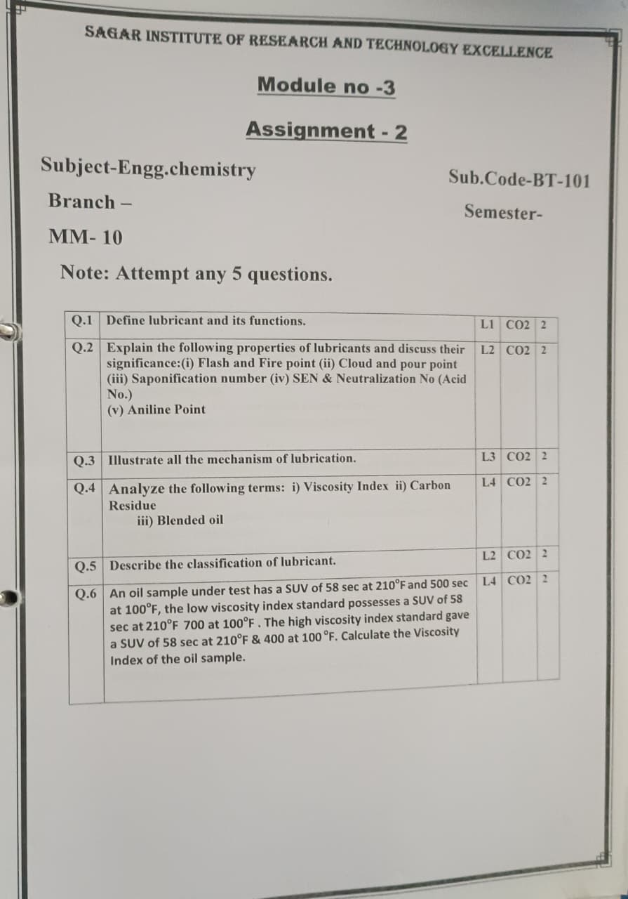 **Focus:** BT-101 Engineering Chemistry