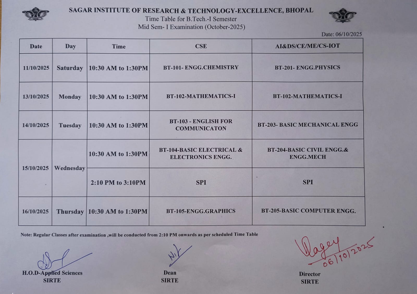 Detailed schedule for all mid-term papers is attached. All students must download and verify their timings. Mandatory action required.
