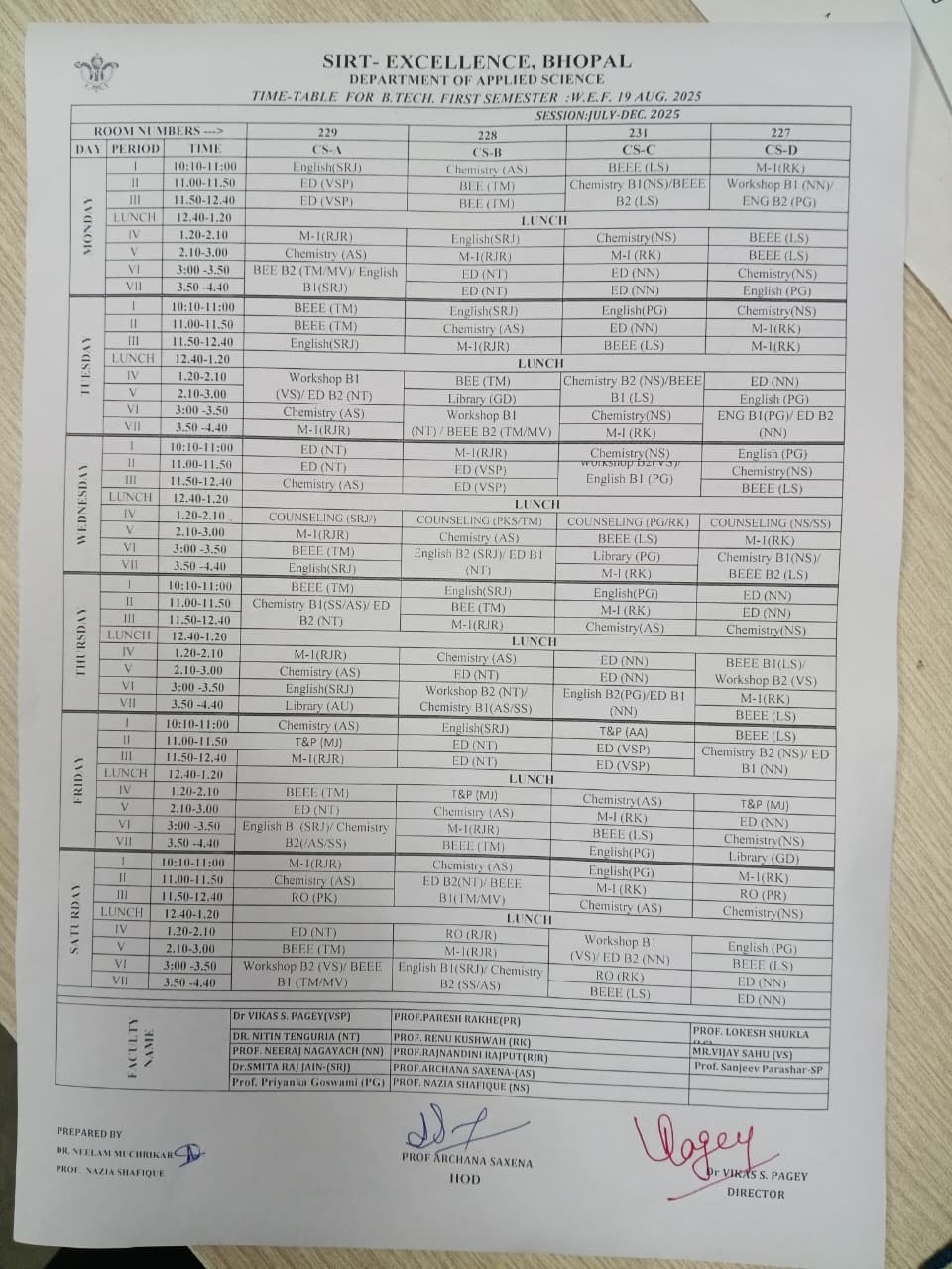 | 20 | SHREYANSHI PANDIT | 0501CS251189 |